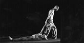 von Zeitlupen. Eine nackte Leiche wird über die Bühne